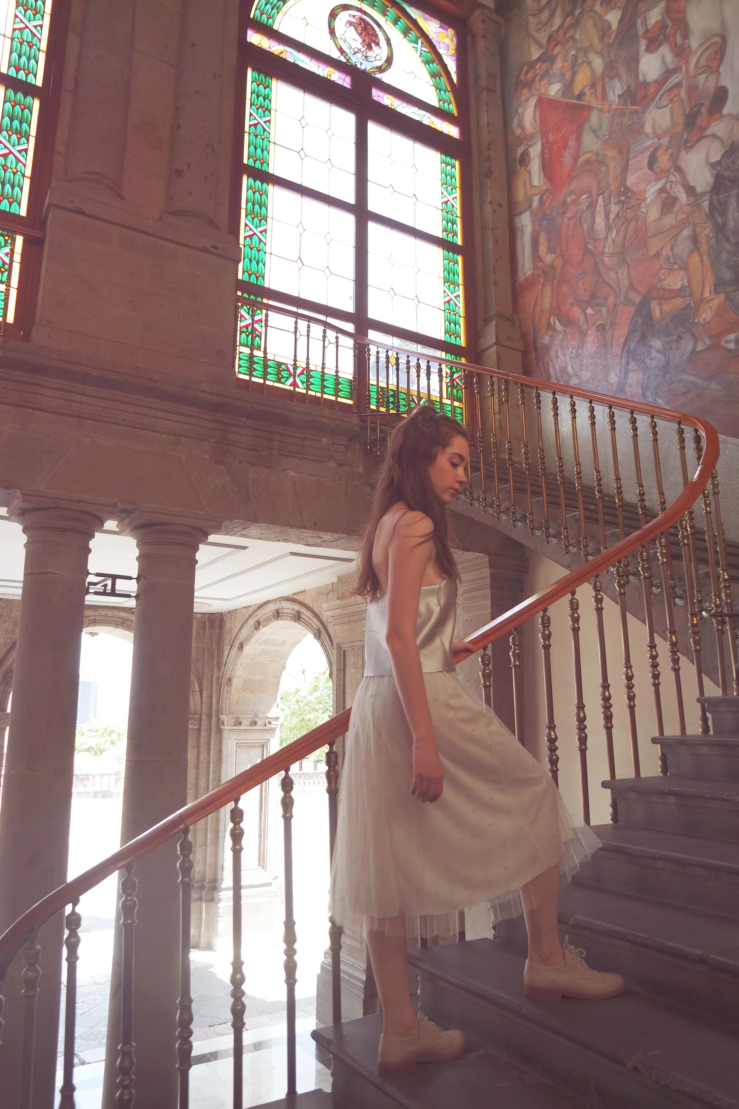 No había acudido al castillo desde la última función de La Bella Durmiente en el 2013. Debo decir que fue una sensación muy extraña. No recordaba como se veía el museo sin la adaptación que se hacía para llevar acabo las presentaciones. Caminando por los pasillos pude imaginar esas largas semanas de funciones. Aquellos días en los que aún no tenía contrato y cada función era la oportunidad de mostrarme ante la dirección. Entre los murales de Siqueiros y Clemente Orozco, pude verme a mi misma repasar el rol de Caperucita Roja una y otra vez antes de salir al escenario. Esa fue la primera oportunidad que tuve de bailar fuera del cuerpo de baile... y pensar que un papel tan sencillo me ponía tan nerviosa. Solamente pasé dos temporadas de La Bella Durmiente en este lugar pero fueron muchos los recuerdos que reviví aquel día dentro de las paredes del Castillo de Chapultepec.
